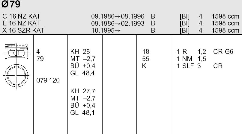 - Tłok, komplet na 1 cylinder, 2. naprawa (+0,50) Opel Vectra A (86, 87)