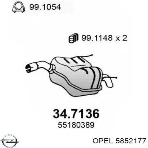 5852177 Opel tłumik, tylna część